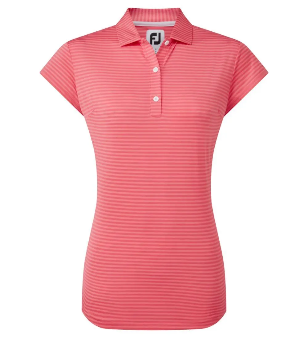 FJ ProDry Lightweight Stretch Lisle fabric. All over tonal microstripe pattern. Cap sleeve construction with contrast neck piping. Tonal FJ logo on rear yoke. Moisture wicking technology draws moisture away from the body. Easy care fabric to minimise wrinkling. SPF 30 UV protection