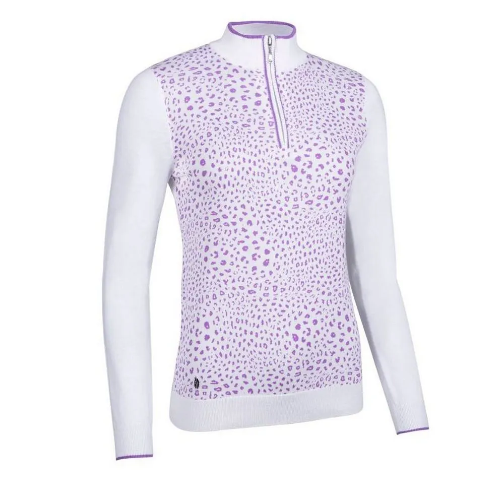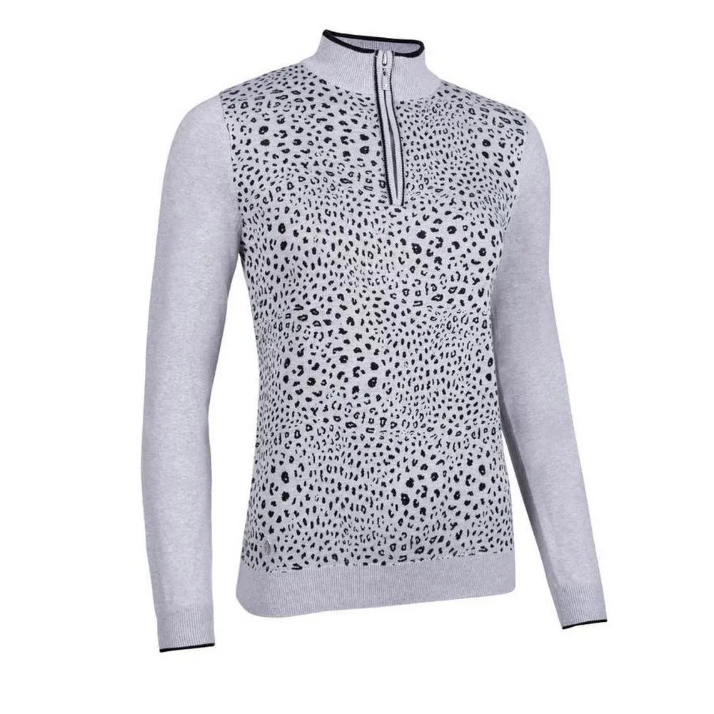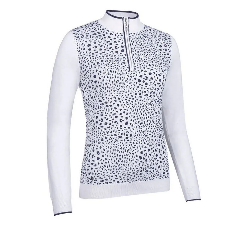 Janis – Ladies Zip Neck Animal Print Cotton Golf Sweater