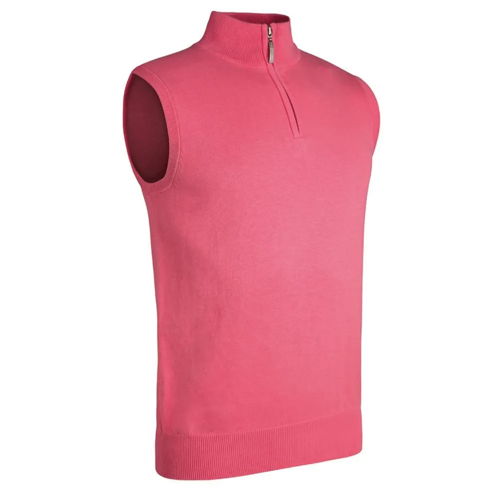With the added versatility of a zip neck, the sleeveless Stanley slipover is a cup winner when it comes to wear-ability. An ideal piece of layering kit for any golfer, the design, available in a range of colours, particularly lends itself to wearing when increased freedom of movement is important (and really, in golf, when isn’t it?). Made in top quality soft combed cotton, knitted by skilled craftspeople to a smooth and fine gauge, this men’s slipover sweater is lightweight, durable and breathable with natural coolness and comfort.