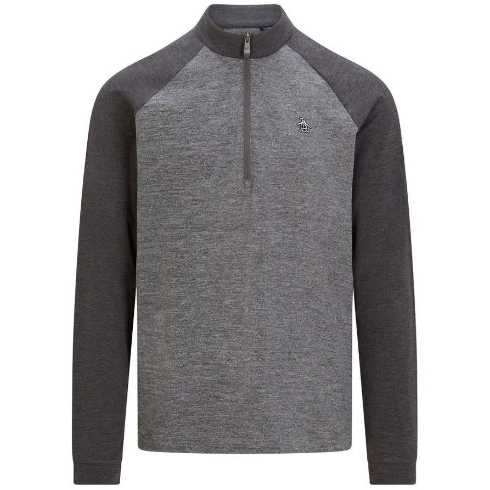 Men’s Original Penguin Golf Block 1/4 Zip Pullover. A sporty, lightweight fabric 1/4 zip mid-layer. Constructed from a moisture-wicking fabric; the OPG moisture management system will keep you fresh and dry throughout your round.